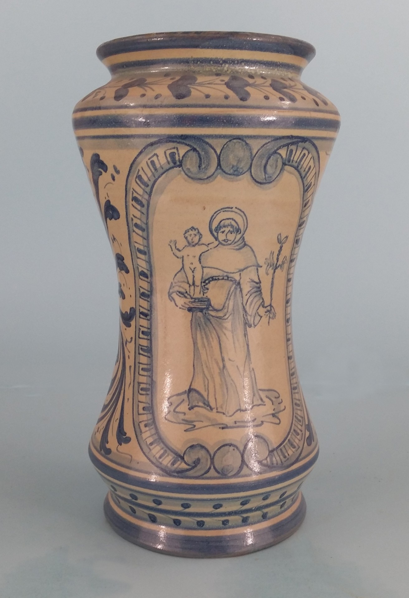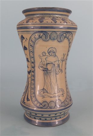 maiolica Mario Iudici (Caltagirone 1928) - Vaso Farmacia h cm 25, diametro cm 14 maiolica Chi ama le ceramiche popolari, e in generale le tradizioni artigianali della terra siciliana, ha un grosso debito con il Maestro Mario Iudici.