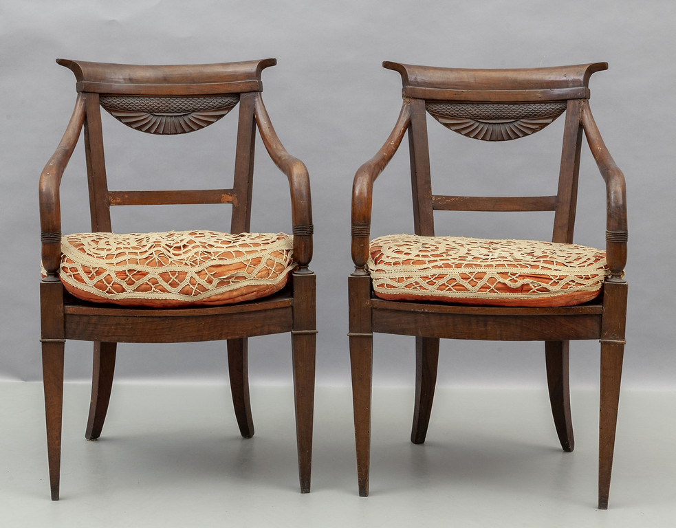 Cinque poltrone Direttorio in noce, Genova inizi sec.XIX