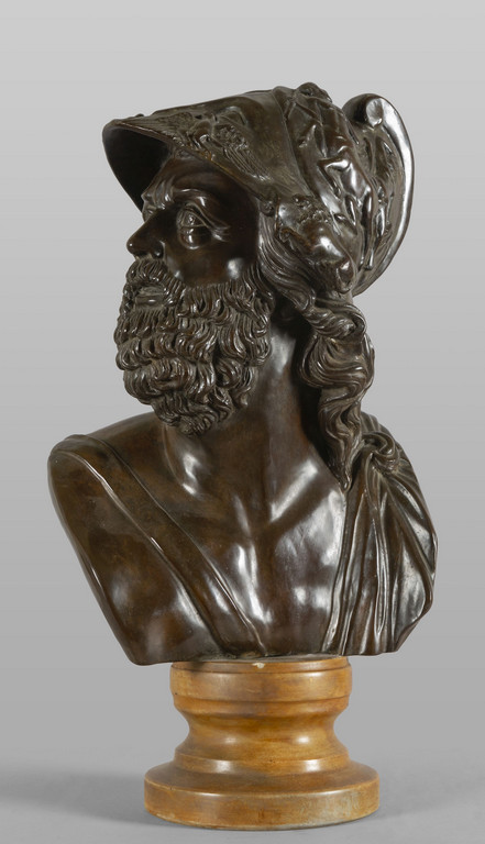 Busto di Aiace, scultura in bronzo, base in marmo, f.to