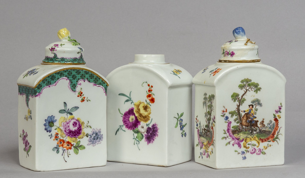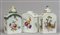 Tre bottigliette portathè in porcellana (una mancante del tappo ed una con tappo rotto) sec.XIX
