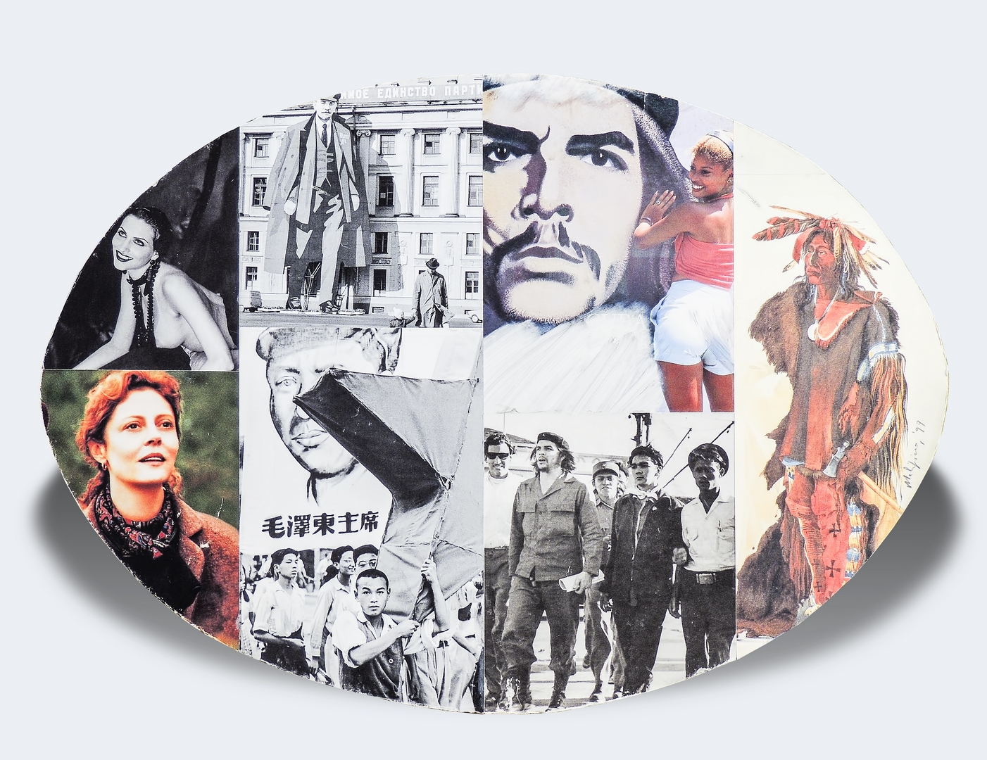 MALIPIERO La via che scorre collage su cartone ovale, firmato e datato 99, al verso titolato, firmato e datato 99, reca iscrizione dell'artista