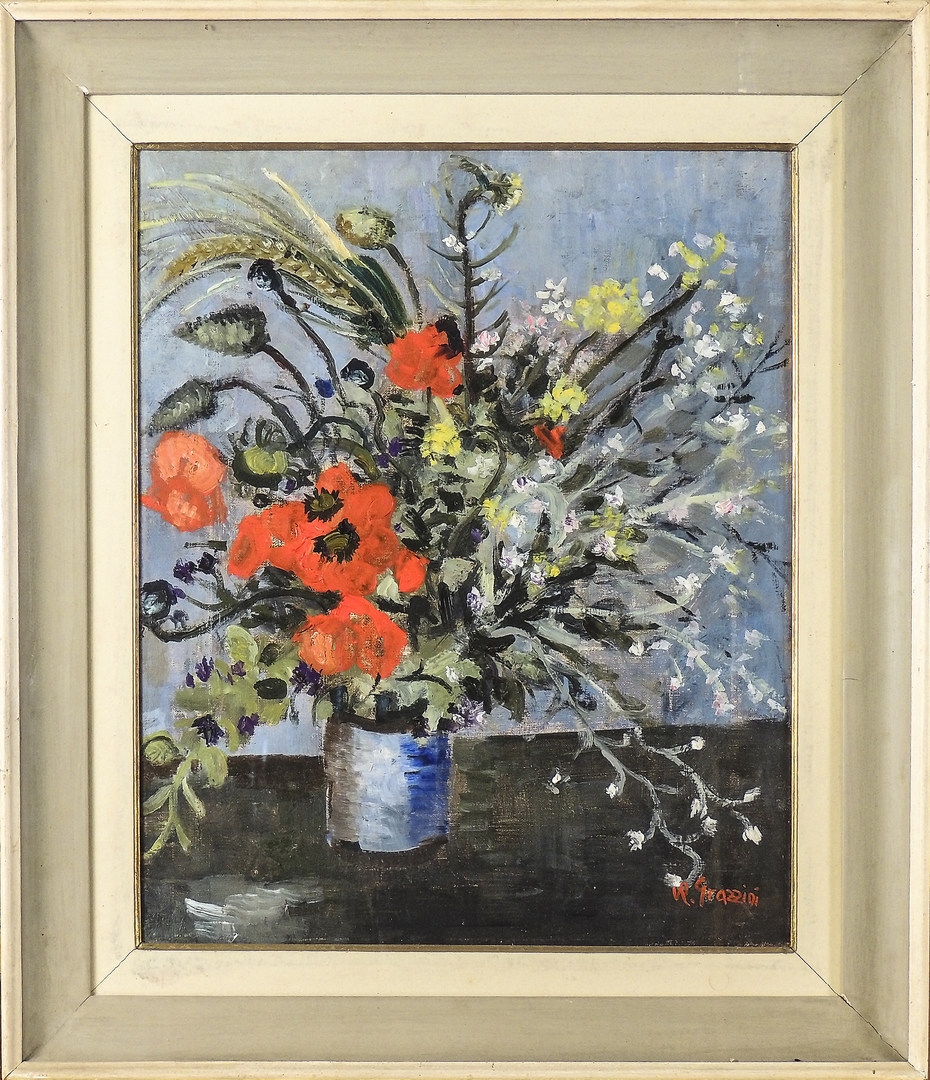 RENZO GRAZZINI (1912-1990) Fiori olio su tela, firmato, in cornice cm 53x44