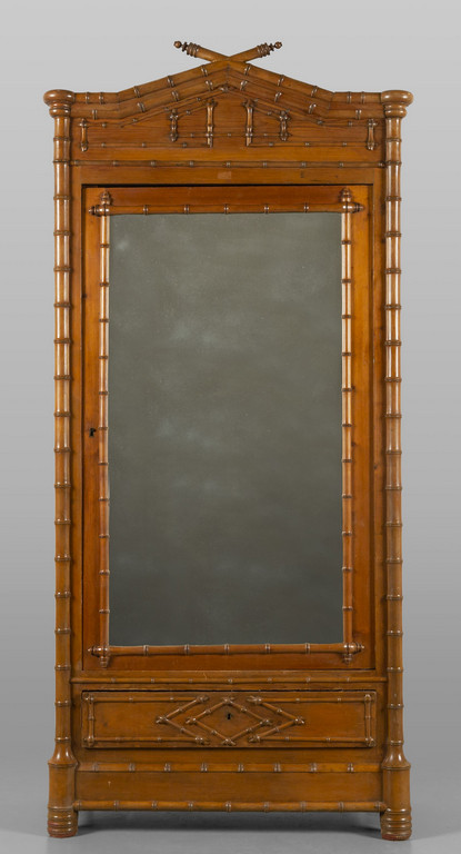 Letto singolo ed armadietto ad un'anta con specchio in legno ad imitazione del bambù, Inghilterra sec.XIX