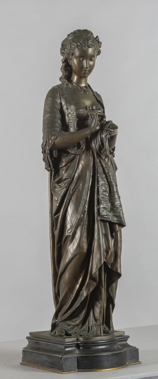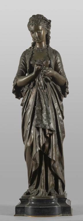 Giovane fanciulla, scultura in bronzo, base in marmo nero, inizi sec. XIX