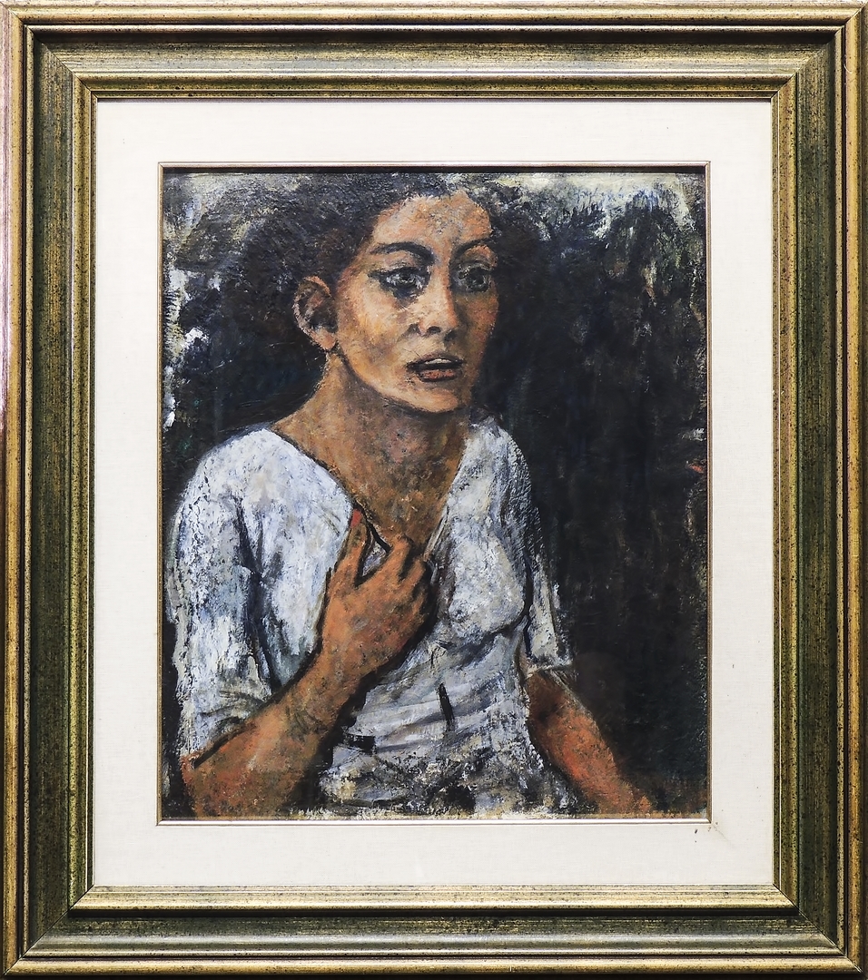 UGO CAPOCCHINI (1901-1980) Ritratto femminile olio su cartone, firmato, al verso firmato e datato 76, in cornice cm 60x50 Al verso reca cartiglio "Comitato promotore per le manifestazioni espositive Firenze Prato 1978". Reca cartiglio "Galleria d'Arte L'Indiano, Firenze".