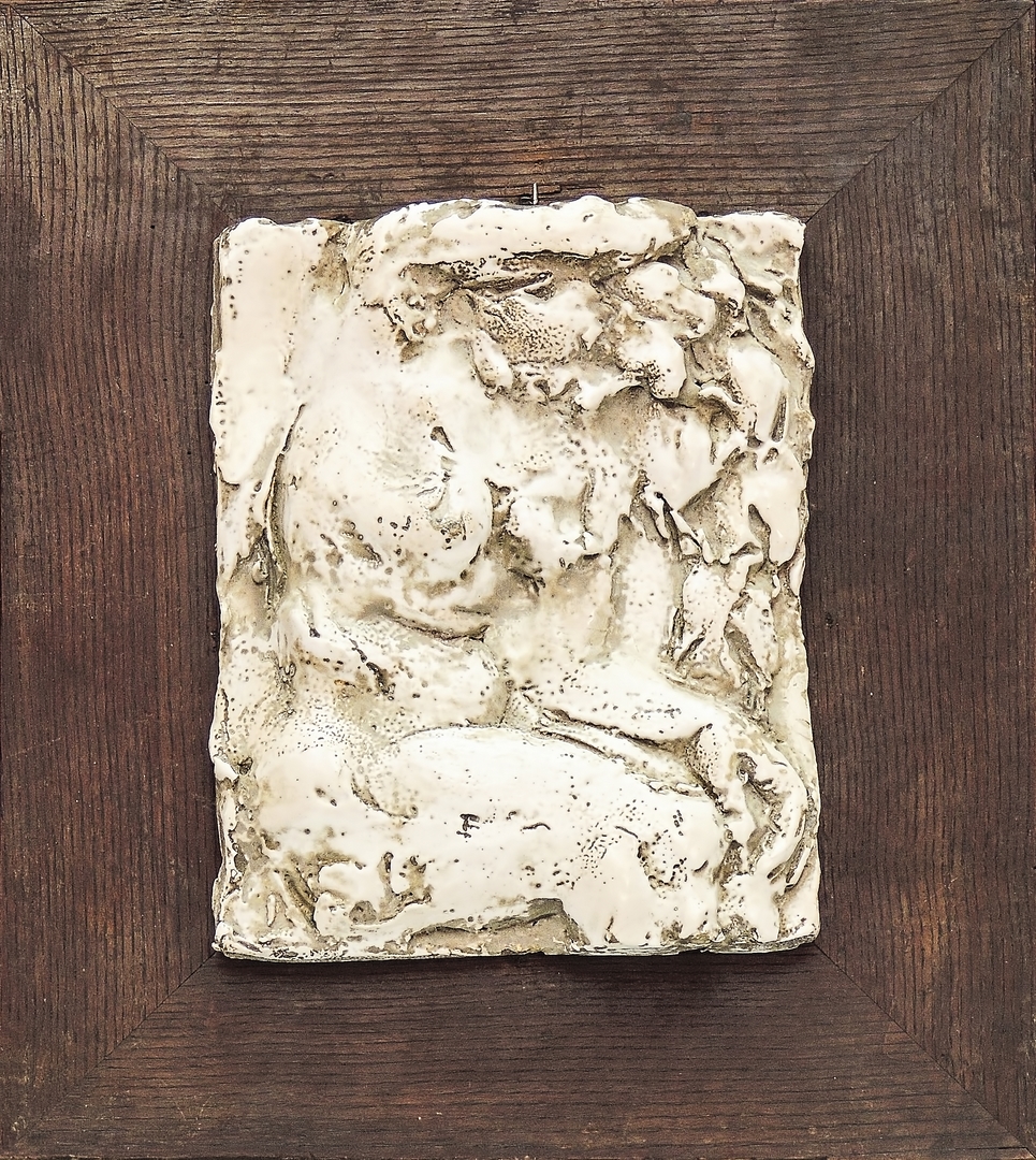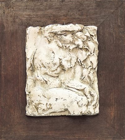 LEONCILLO LEONARDI (1915-1968) Nudo femminile seduto, Anni Quaranta placca in gres smaltato, su supporto in legno cm 27x22 Corredato di autentica del Professor Enrico Mascelloni su fotografia