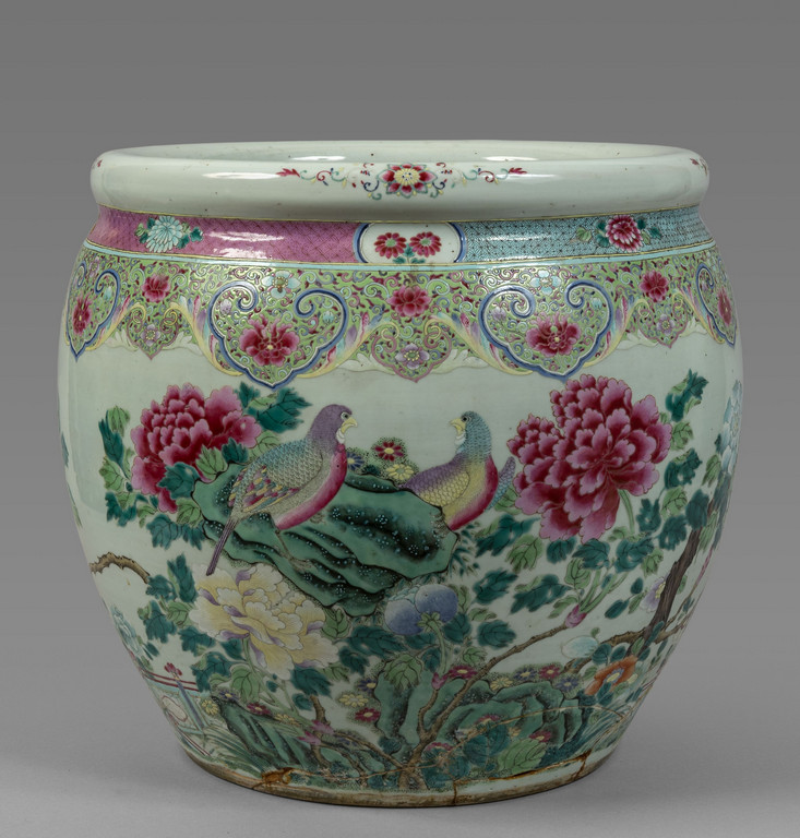 Lotto 0831 | Cachepot in porcellana policroma famiglia Rosa