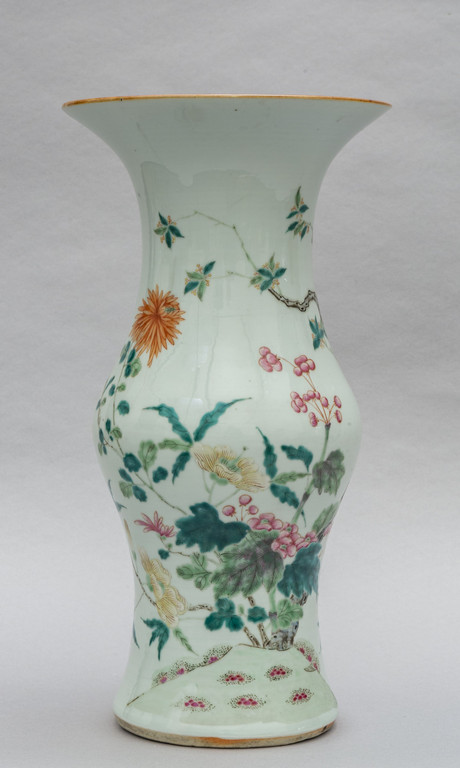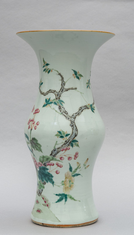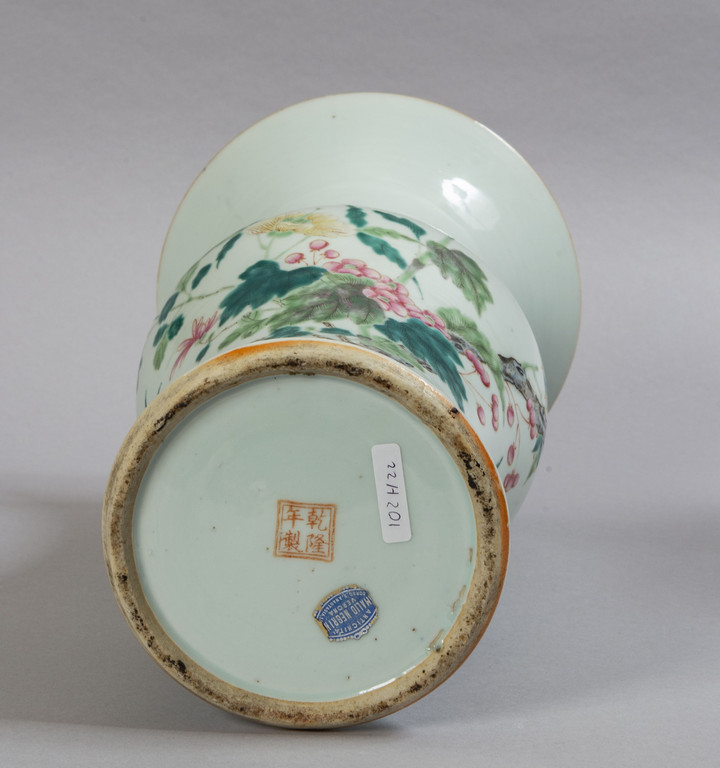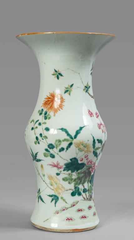 Vaso a tromba in porcellana policroma a fondo bianco con decoro floreale, marcata sul fondo, Cina sec.XIX