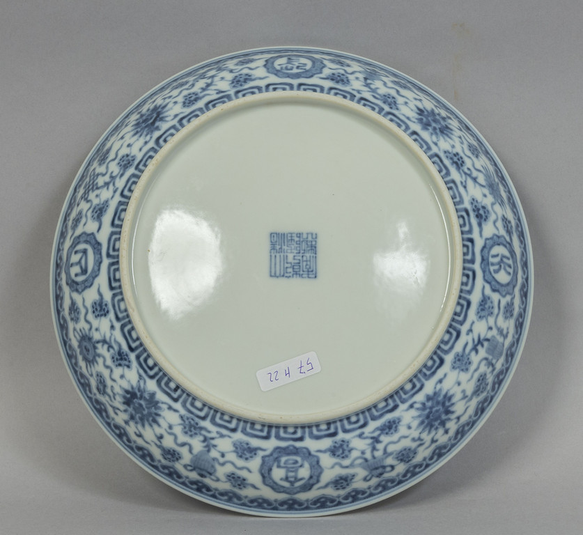Ciotola in porcellana di Cina decorata in bianco e blu con il simbolo "Shou"