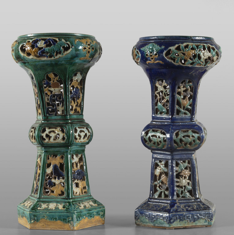 Coppia di colonne in gres invetriato, Cina sec.XIX