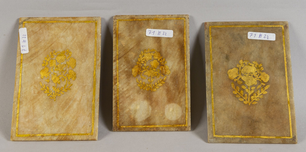 "Ritratti di Maharaja" tre placche persiane in alabastro dipinte, sec.XIX