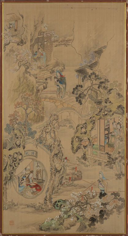 "Scena di vita cinese con molte figure" pannello su seta, Cina sec.XX