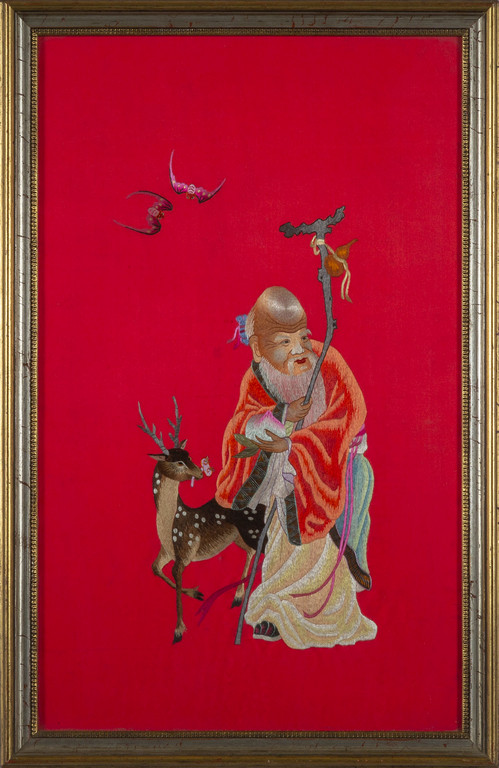 Lotto 0882 | Saggio con cerbiatto, ricamo in seta, Cina