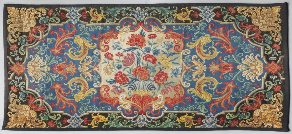 Testata da letto a piccolo punto con al centro mazzo di fiori, Francia sec.XIX