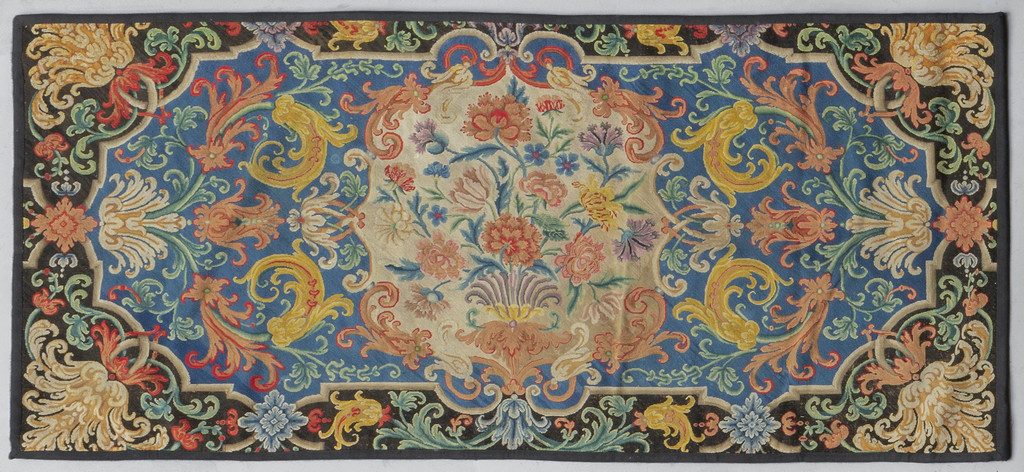 Testata da letto a piccolo punto con al centro mazzo di fiori, Francia sec.XIX