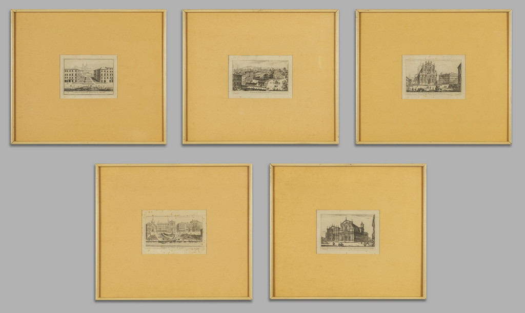 Vedute di Roma, cinque stampe disegnate da Piranesi sec.XVIII