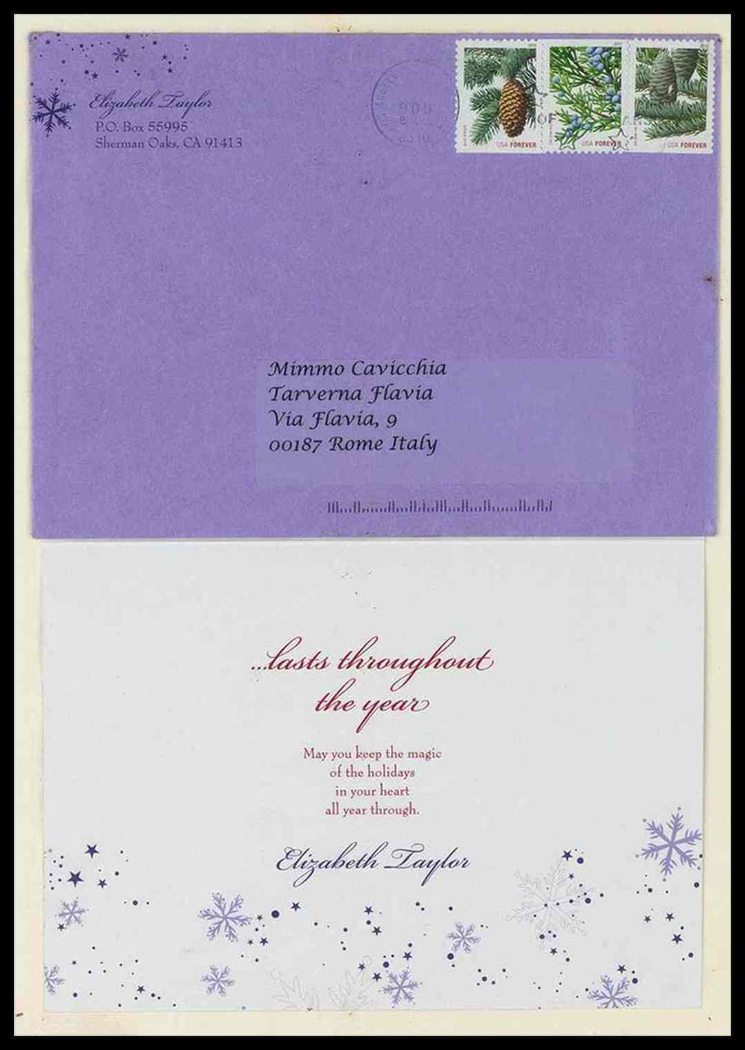 Biglietto di auguri, in busta, inviato da Elizabeth Taylor. Senza firma