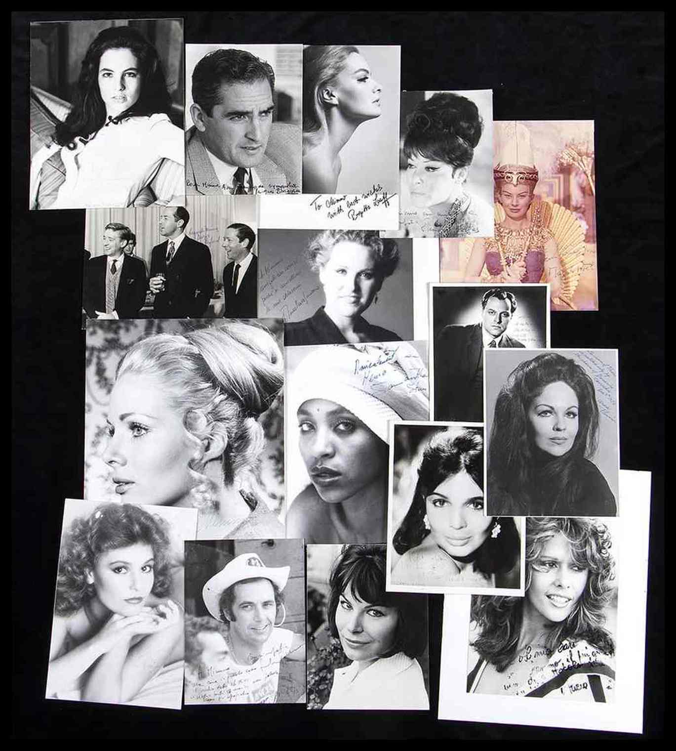 Lotto composto da 16 fotografie, la maggior parte con dedica e firma autografe degli attori ritratti, per Mimmo e la Taverna Flavia