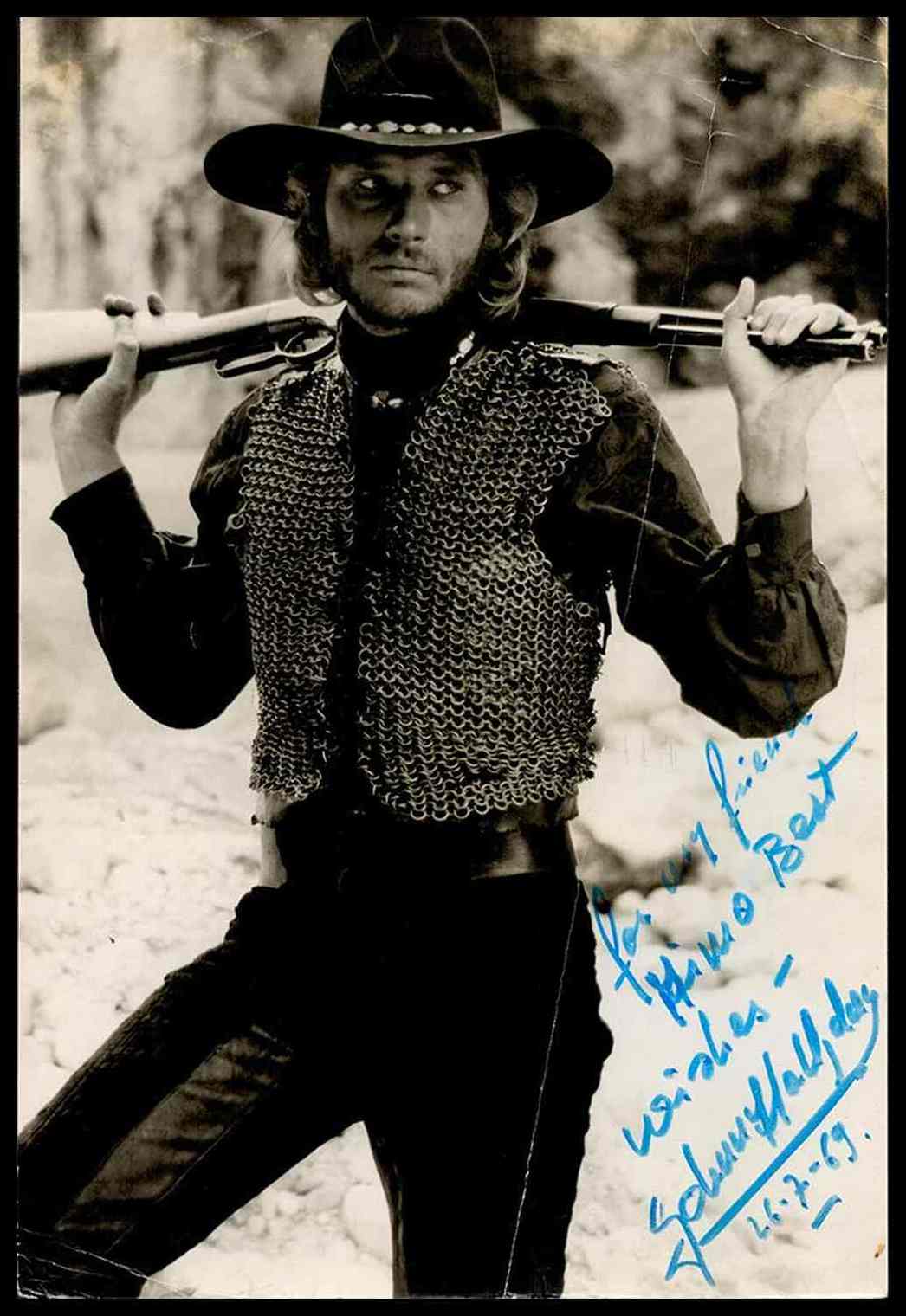Halliday, Johnny (Parigi, 15 giugno 1943 – Marnes-la-Coquette, 5 dicembre 2017) Foto autografata