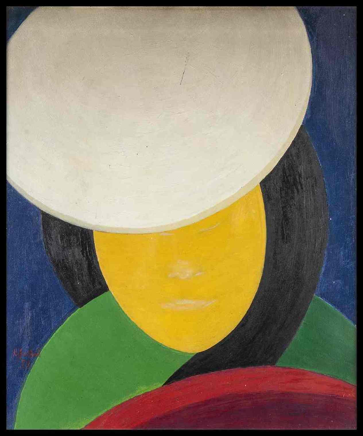 Composizione originale firmata Amintore Fanfani "Giappone" olio su tela 1977.