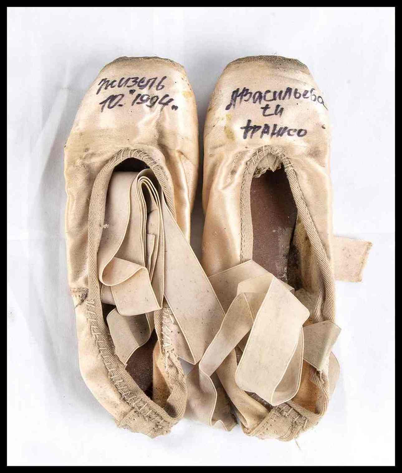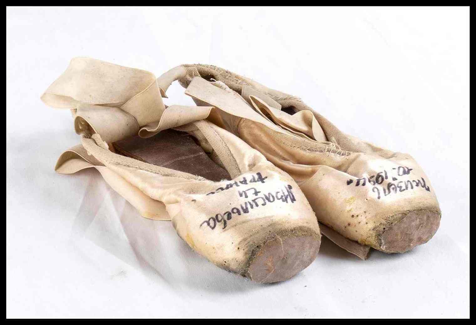 Scarpette usate da Bacul in scena al Teatro dell'Opera di Roma. Firma originale. Evidenti segni d'uso.