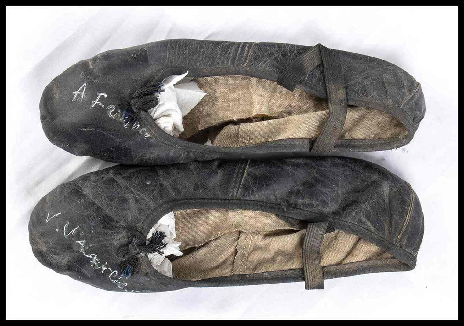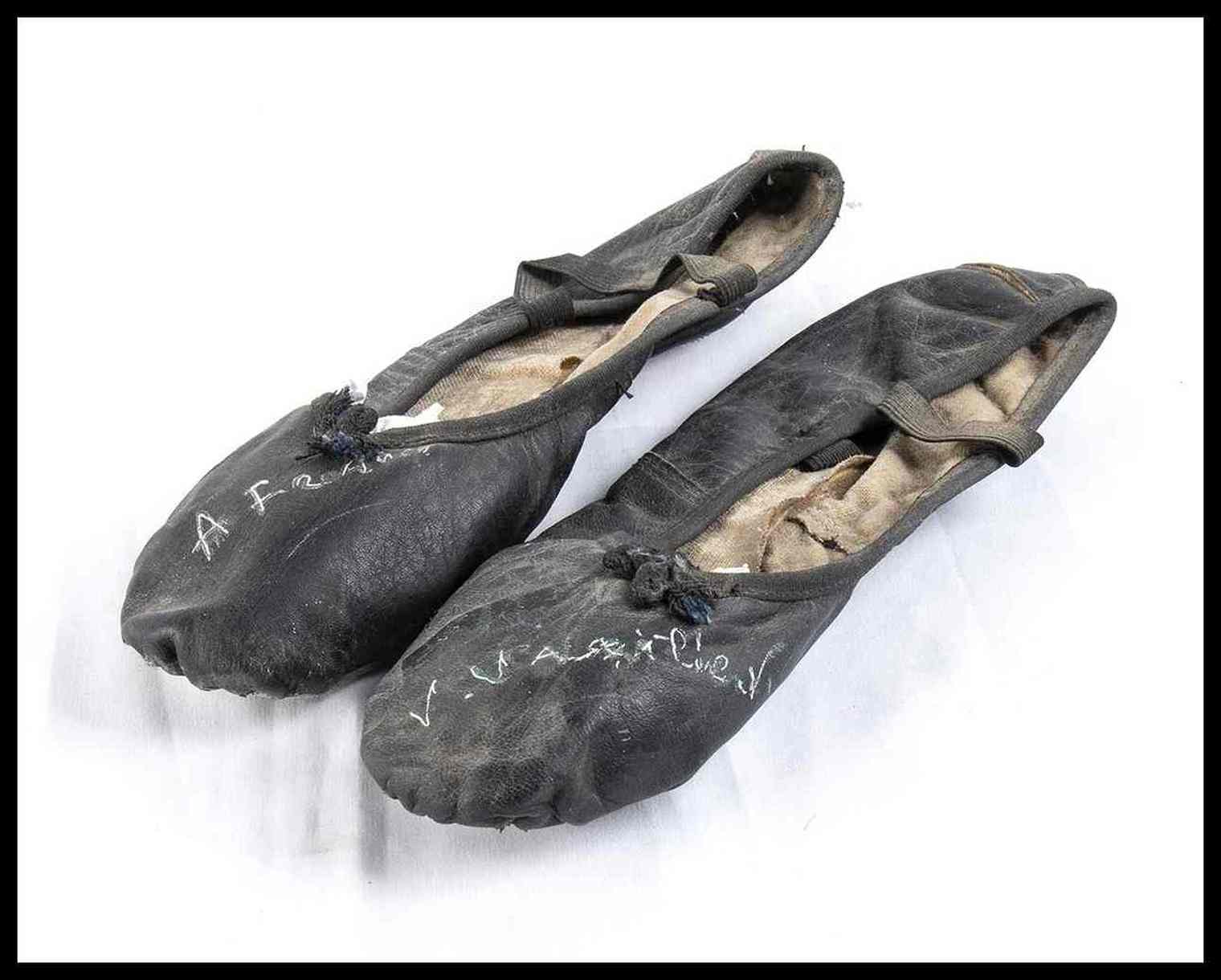 Scarpette usate da Vasil'ev in scena al Teatro dell'Opera di Roma. Firma originale. Evidenti segni d'uso.