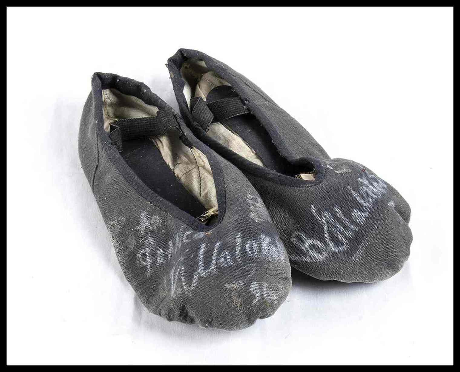 Paio di scarpette "mezzepunte" da danza classica, in tessuto nero, con dedica ed autografo originali scritti a pennarello bianco, da Vladimir Malakov sulla punta delle scarpe; dedica e firma, con aggiunta di "GISELLE 1994" scritte in nero sulle suole delle stesse scarpe. Nel 1992 diviene primo ballerino del Balletto dell’Opera di Stato di Vienna. Dal 1992 al 1994, per tre anni consecutivi, viene nominato miglior ballerino del mondo dalla prestigiosa rivista Japan’s Dance Magazine
