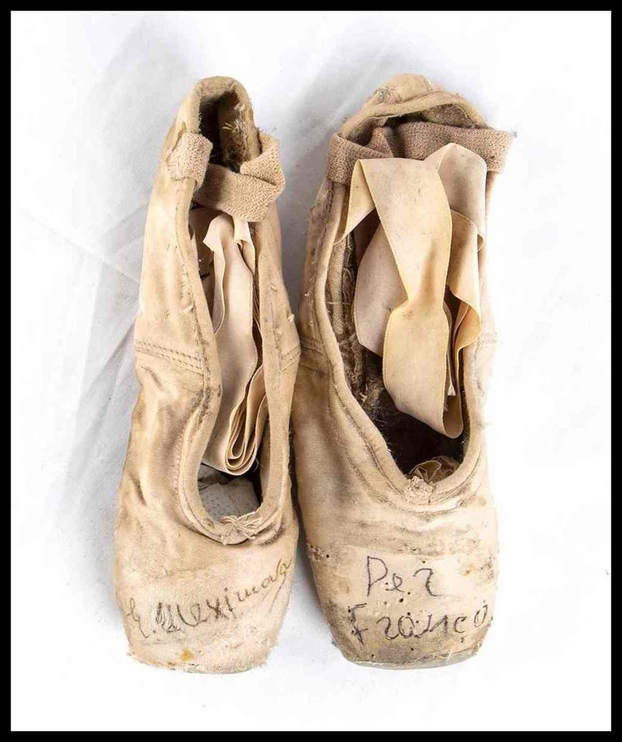 Scarpette usate in scena al Teatro dell'Opera di Roma. Firma originale. Evidenti segni d'uso.