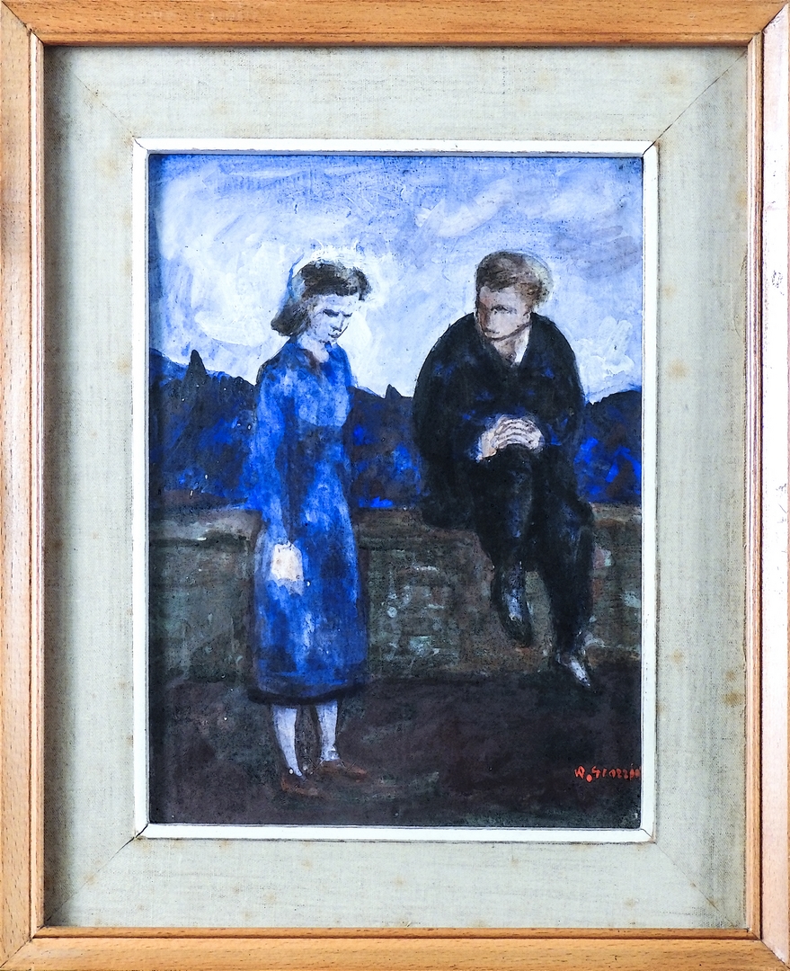 RENZO GRAZZINI (1912-1990) Innamorati olio su cartone, firmato, in cornice cm 35x25