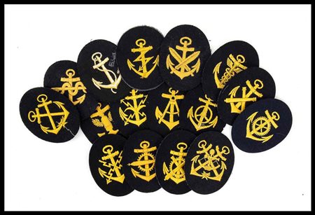 16 distintivi da braccio della Kriegsmarine. Vari tipi di ricamo in filo giallo su panno blu scuro