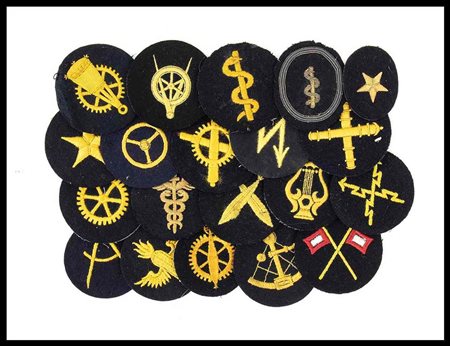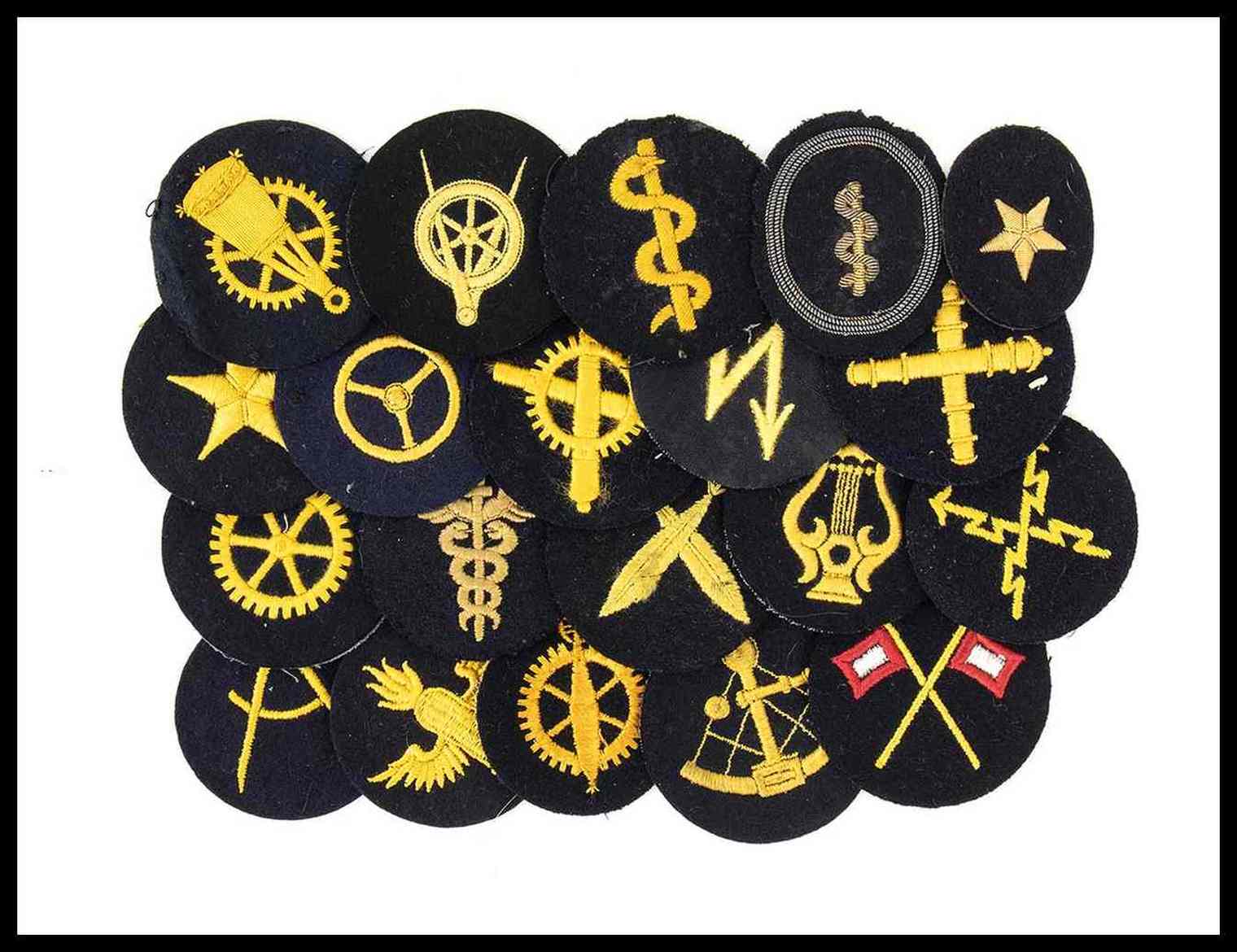 19 distintivi di carica della Kriegsmarine ricamati in filo giallo su panno blu scuro