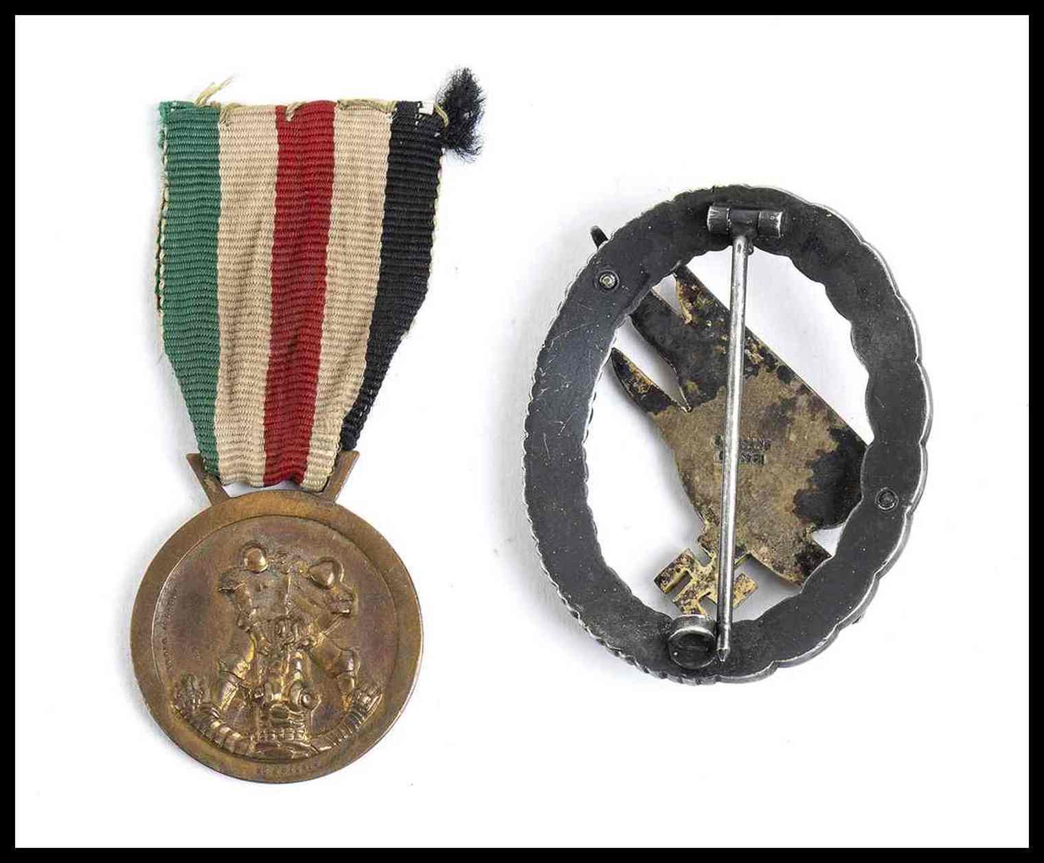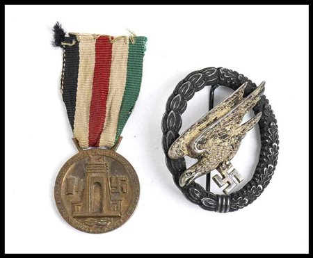 GERMANIA, III REICH<br>Lotto di brevetto da paracadutista, medaglia della campagna italo-tedesca del Nord Africa e Acquila metallica LW