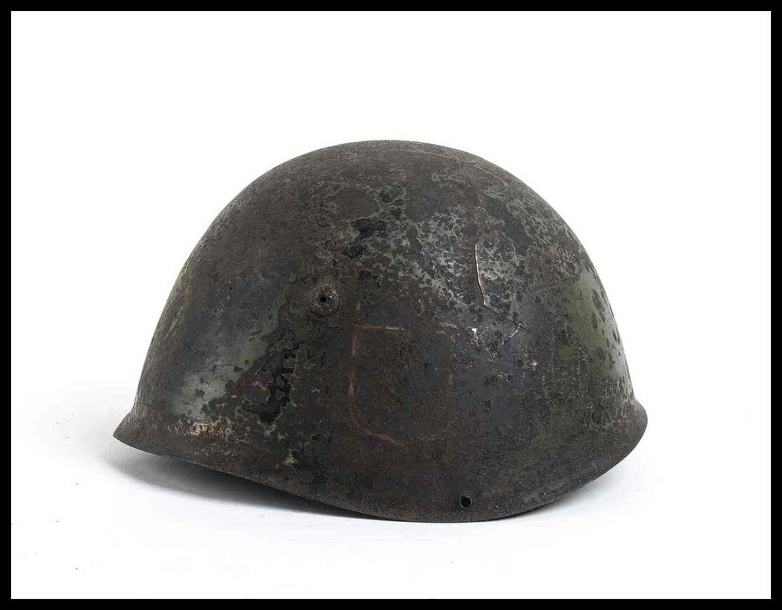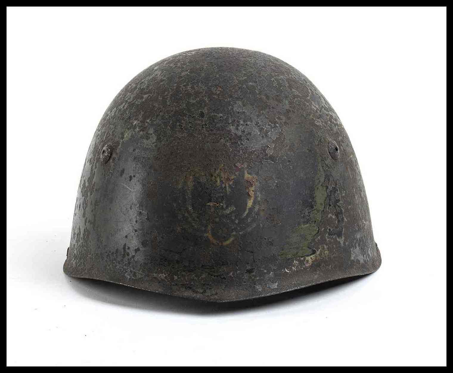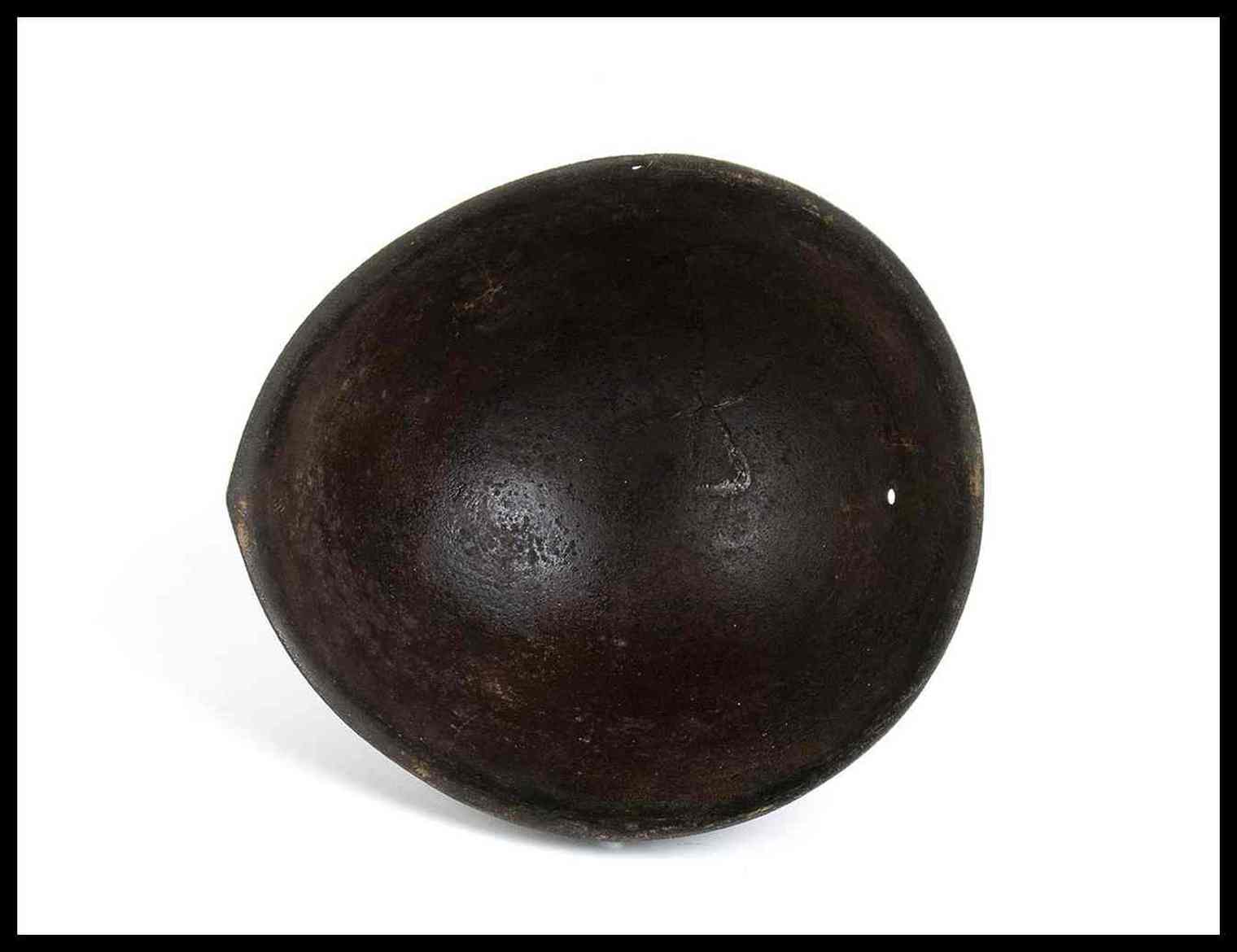 guscio di elmo della MVSN nero con fregio giallo, riutilizato in epoca RSI, discrete condizioni, in patina