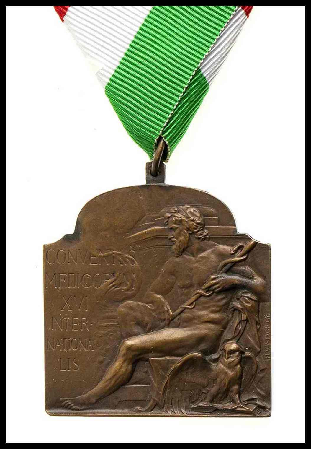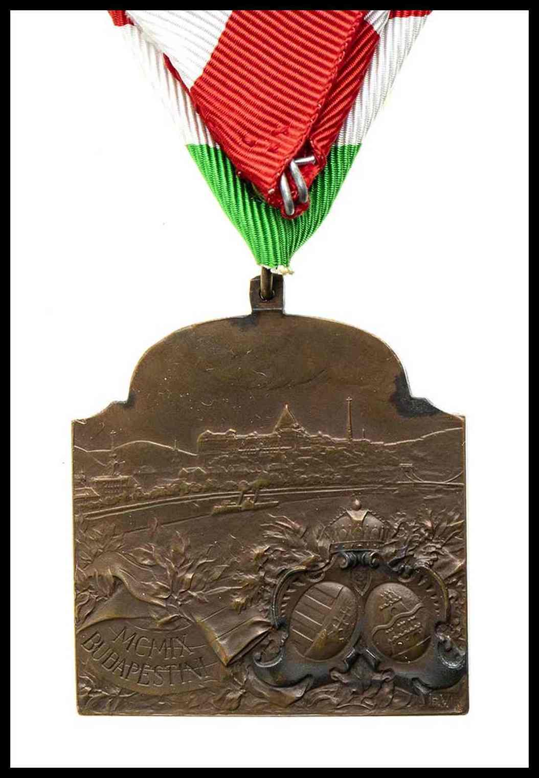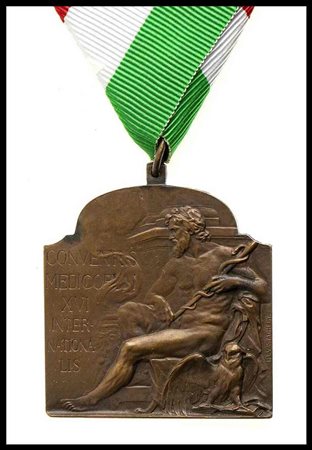 medaglia rettangolare per il xvi congresso medico internazionale tenutosi a budapest nel 1909, nastro non coevo
