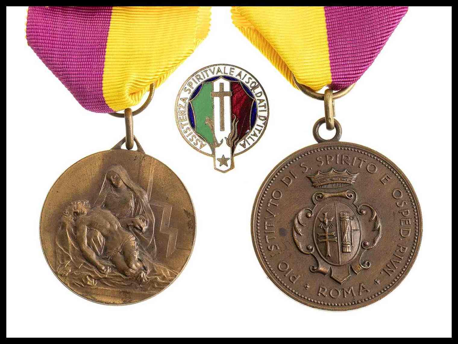 2 medaglie di Benemerenza Ospedaliera ed un distintivo di Assistenza Spirituale ai Soldati d'Italia