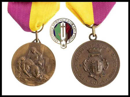 ITALIA, REGNO<br>2 medaglie di Benemerenza Ospedaliera ed un distintivo di Assistenza Spirituale ai Soldati d'Italia