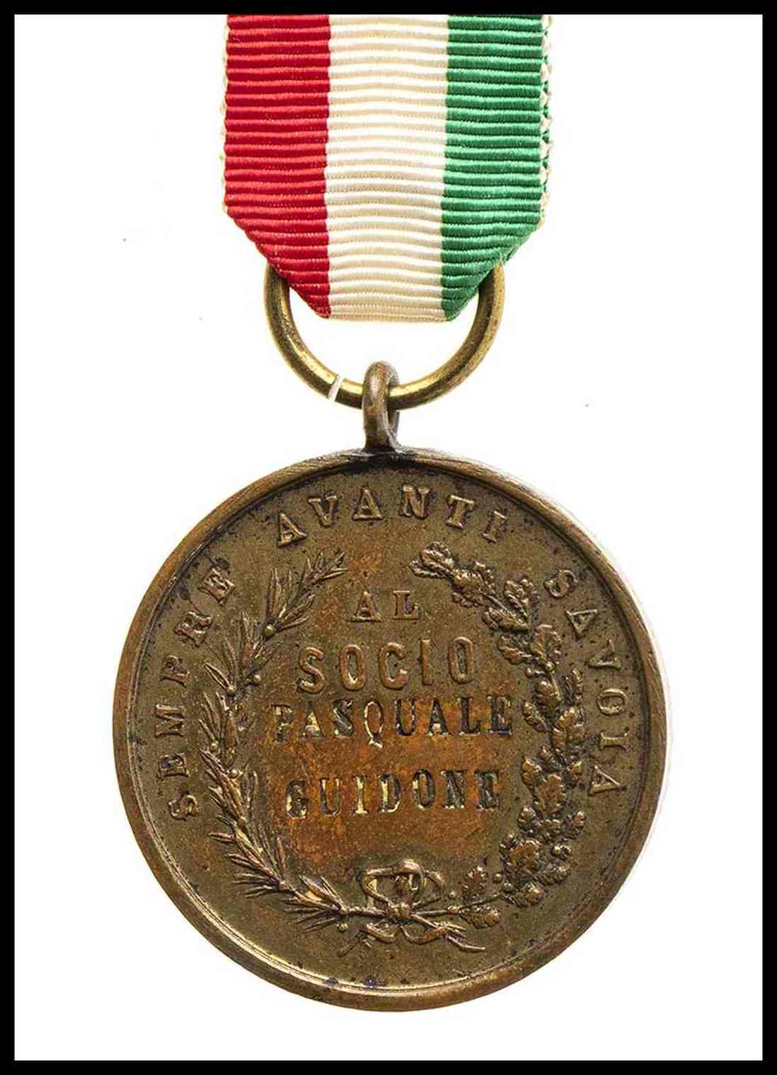 medaglia con effigie di umberto i, al verso nome dell'insignito inciso a punzone