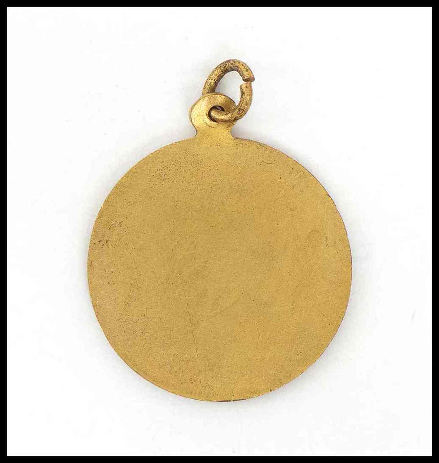 raffinata miniatura in smalto policromo su medaglietta in oro, conservata in astuccio, molto bella, ottimo stato