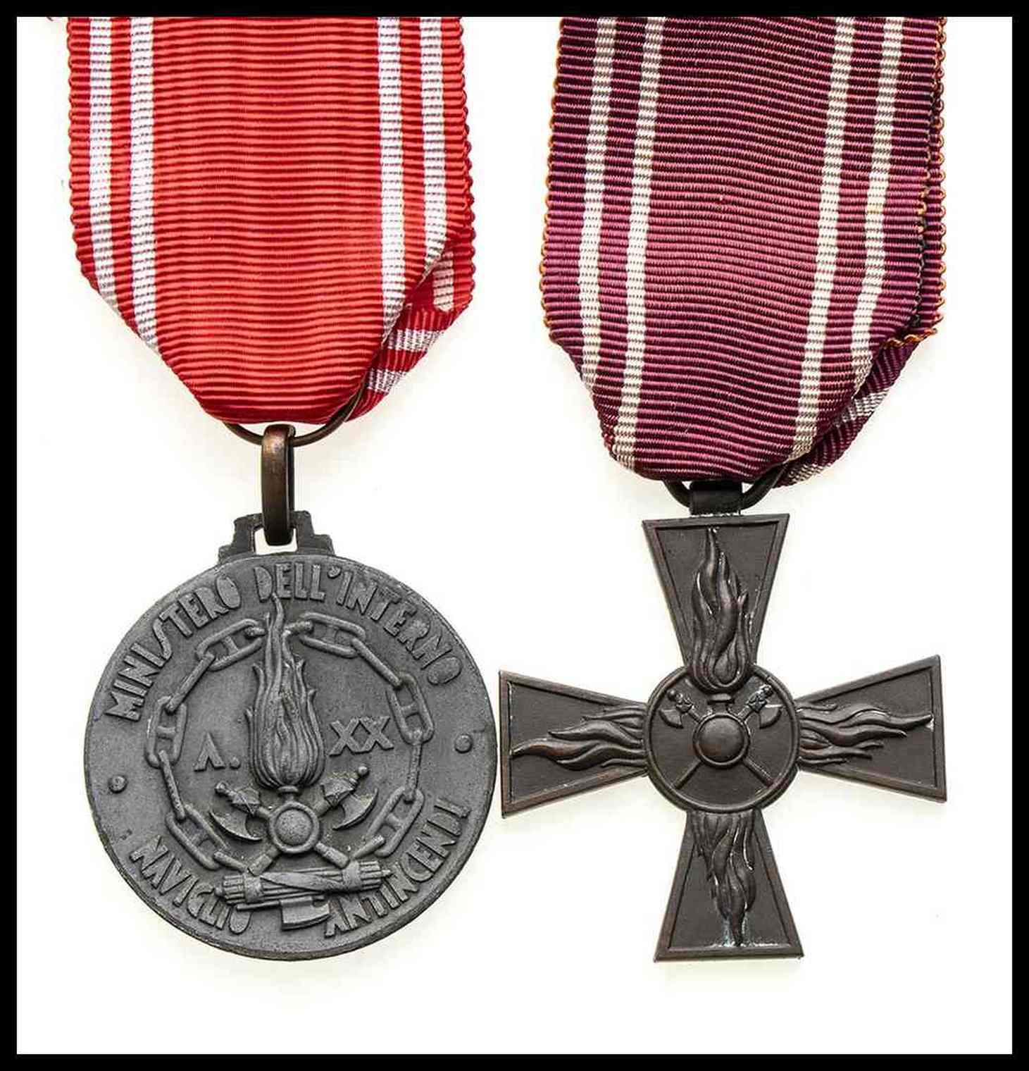 ITALIA, REGNO/REPPUBLICA<br>Lotto di due medaglie Dei Vigili del Fuoco