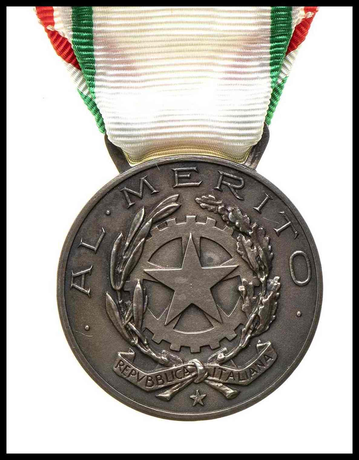 medaglia in argento al merito della cri, cambretta a sezione rettangolare, nastro originale, zecca