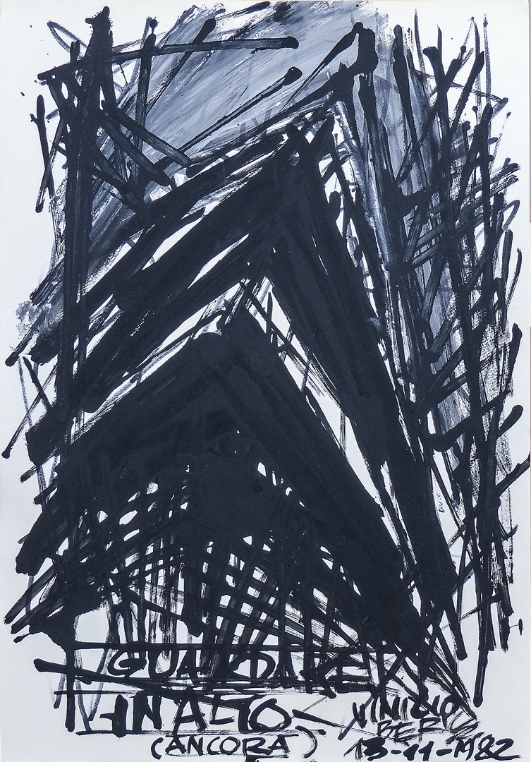 VINICIO BERTI (1921-1991) Guardare in alto (ancora) acrilico su cartoncino, firmato e datato 13-11-1982, in cornice cm 64x44