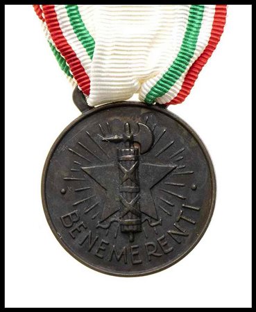 medaglia per benemeriti della cri del tipo in uso nella rsi, probabile copia in fusione con brutta patina artificiale