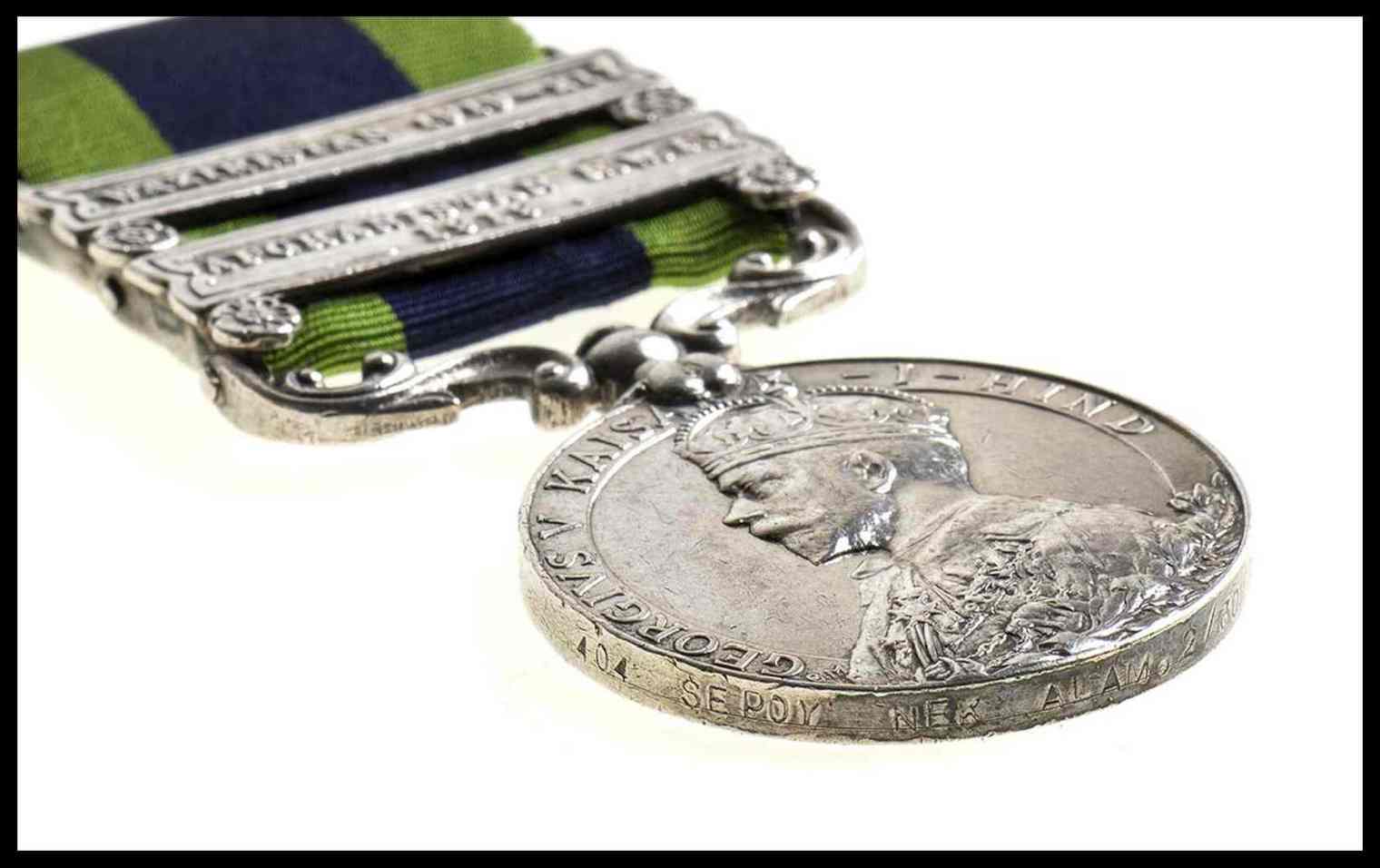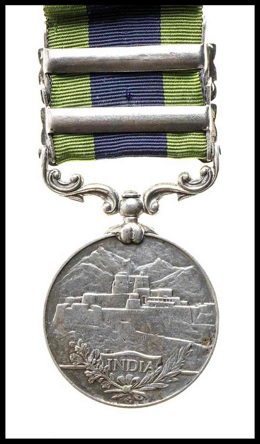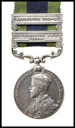 medaglia india general service, giorgio v con due barrette, waziristan 1919-21, afghanistan, n.w.e, attribuita 404 sepoy nek alav, 2/30 pinjabis