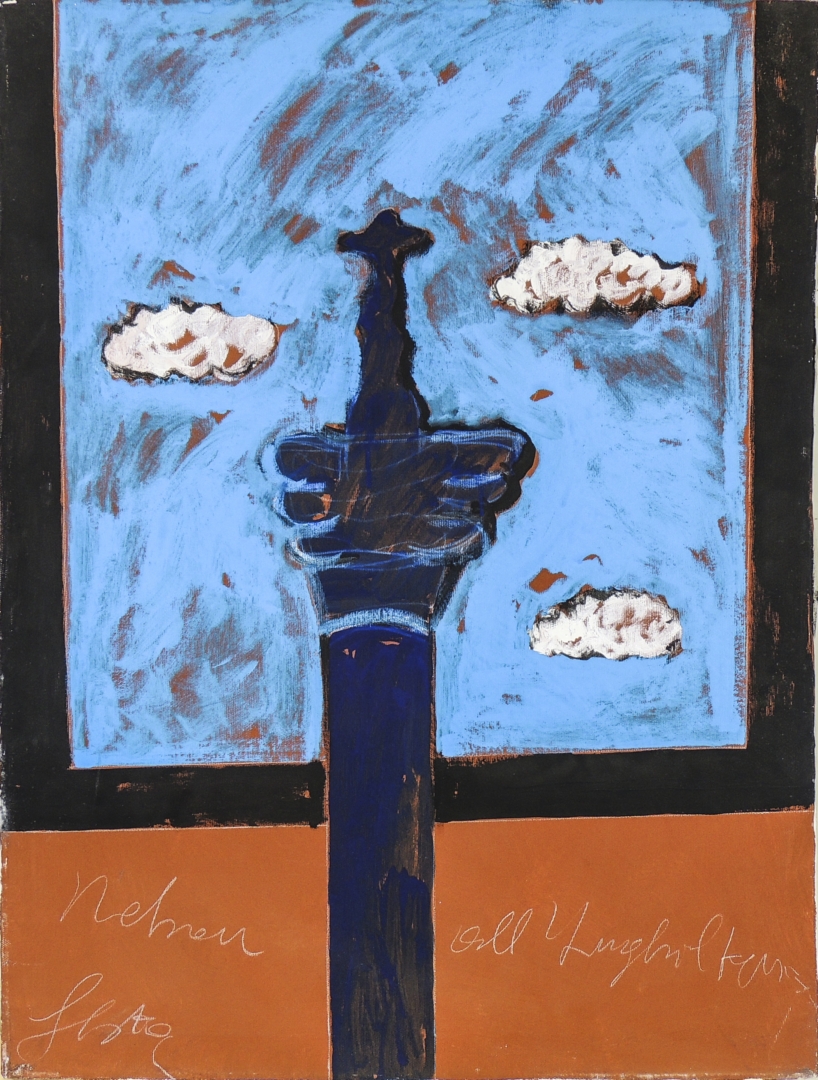TANO FESTA (1938-1988) Nelson all'Inghilterra, Anni Settanta smalto e acrilico su tela, firmato e titolato, in cornice cm 80x60 Corredato di autentica su fotografia dell'Archivio Tano Festa a cura di Studio Soligo Roma, n° RM570860430213