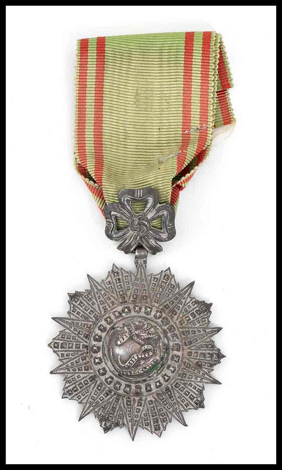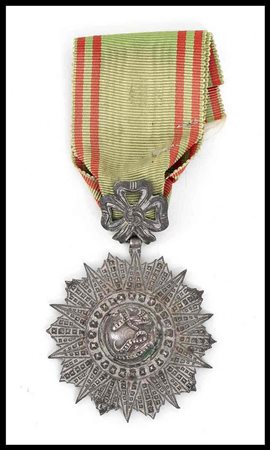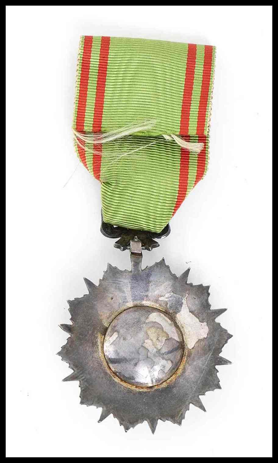 argento, 50 mm, stella a dieci punte, al centro disco con monogramma del Bey con resti di vernice verde. nastro originale, discreto stato