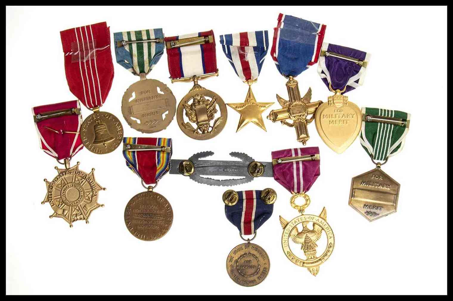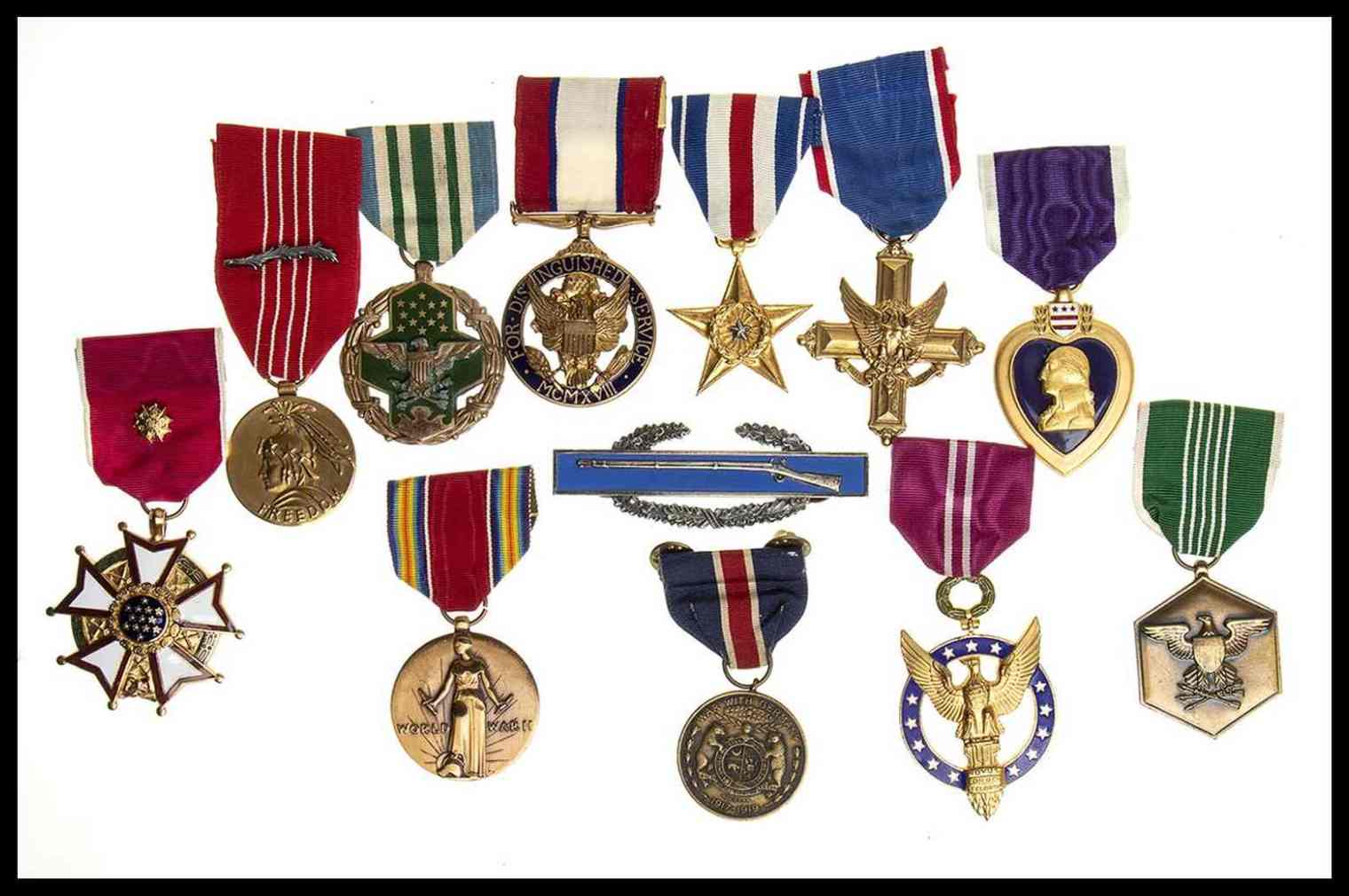 bel lotto di medaglie statunitensi, tra cui una presidential medal of merit, distingued service medal, purple heart, legion of merit ed altre medaglie di campagna e benemerenza