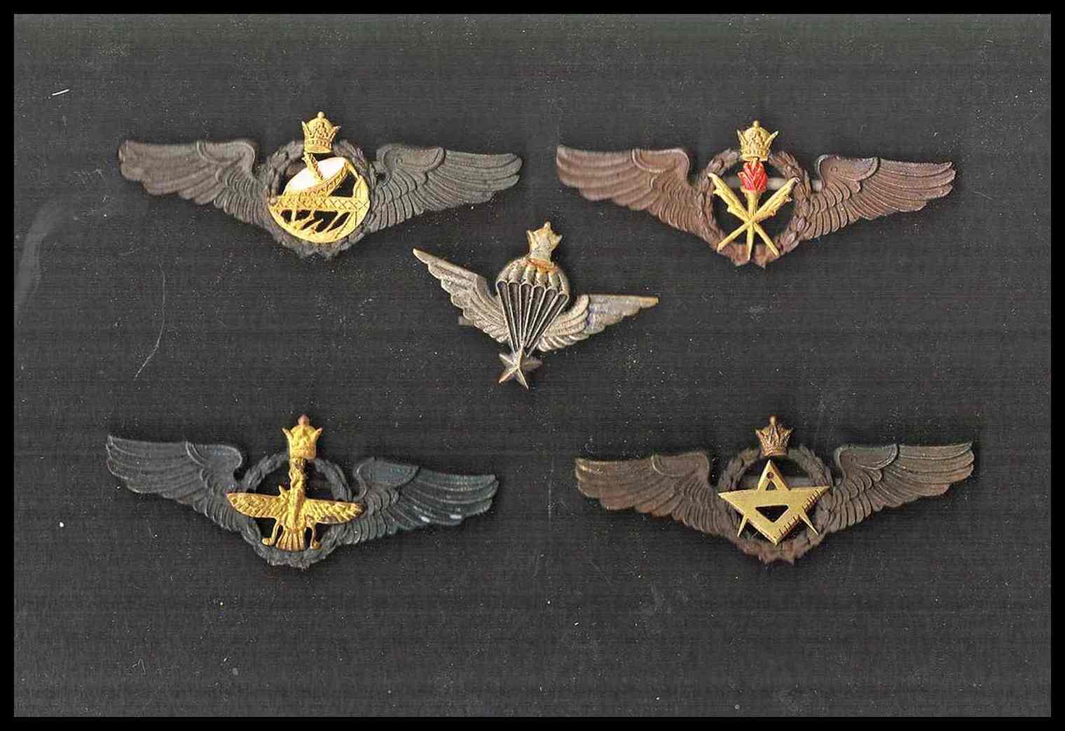 5 distintivi di carica di disegno americano ma di fattura locale, iraniana