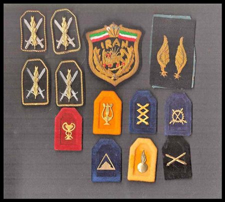 IRAN/PERSIA, PERIODO MOHAMMAD REZA PAHLAVI<br>Lotto di 12 tra mostrine e distintivi