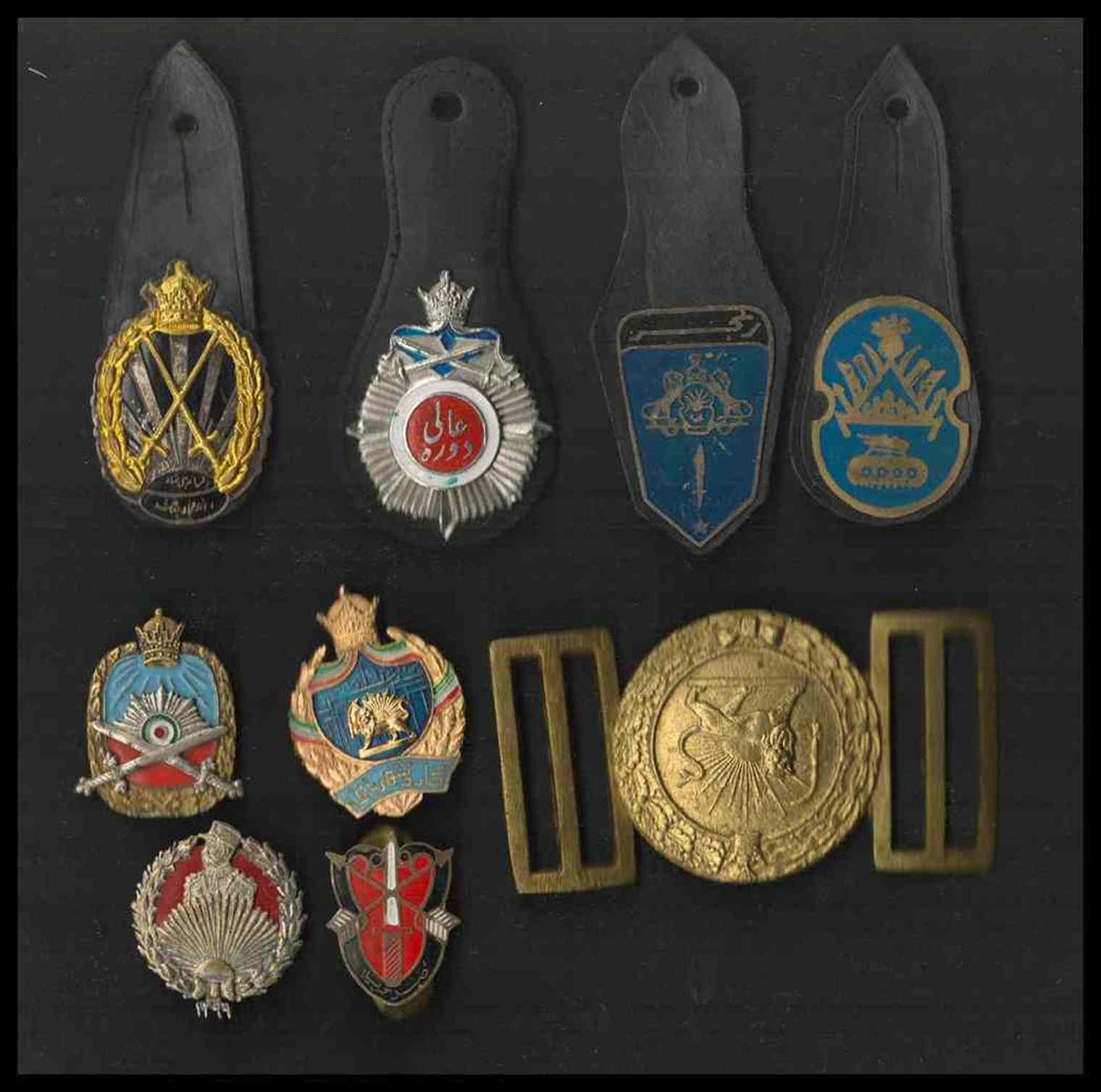 IRAN/PERSIA, PERIODO MOHAMMAD REZA PAHLAVI<br>Lotto di 8 fregi/distintivi ed una fibia