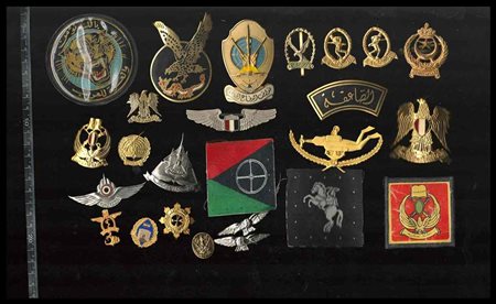 IRAQ?/EGITTO<br>Lotto di 21 fregi e distintivi metallici e patches